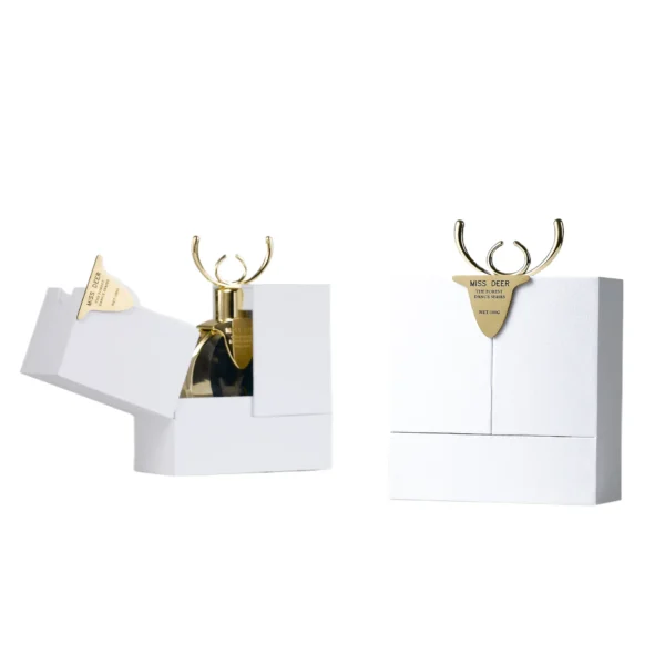 This perfume packaging box embodies an unparalleled elegance, standing out from the norm. Its pristine white exterior embodies simplicity and grandeur, exuding a noble aura that imparts a refreshing sensation. Within this intricate casing lies an exquisite trophy, a symbol of the exceptional allure and self-assurance this fragrance imparts upon its wearer. This meticulous design underscores the brand’s unwavering commitment to perfection, showcasing a relentless pursuit of excellence. Unleashing the box unveils not just the enchanting aroma of the perfume but also an aesthetic spectacle, captivating the senses. Be it for personal indulgence or as a thoughtful gift, this exquisite antler-shaped perfume packaging box remains an unforgettable choice.