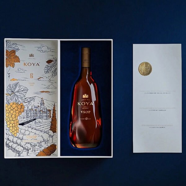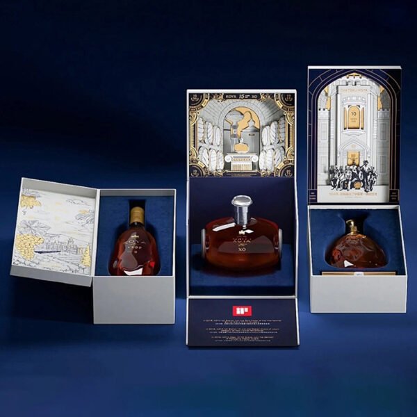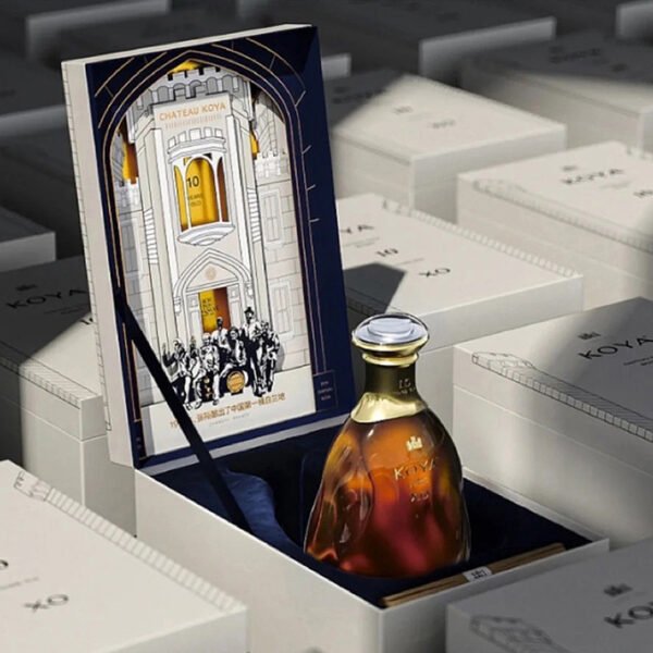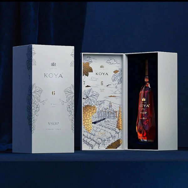 This regal white liquor packaging box embodies aristocratic charm & elegance. Its purity of white embodies solemn royalty, with sleek lines & intricate carvings showcasing artistry. Golden lid accents gleam subtly, mirroring royal heraldry. Inside, a satin cradle holds the bottle, conveying honor & glory. The bottle’s design harmonizes with the box, enhancing the noble ambiance. More than just a vessel, it’s a royal art piece, inviting wine appreciation amidst regal splendor. A protective inner tray completes the luxurious experience.