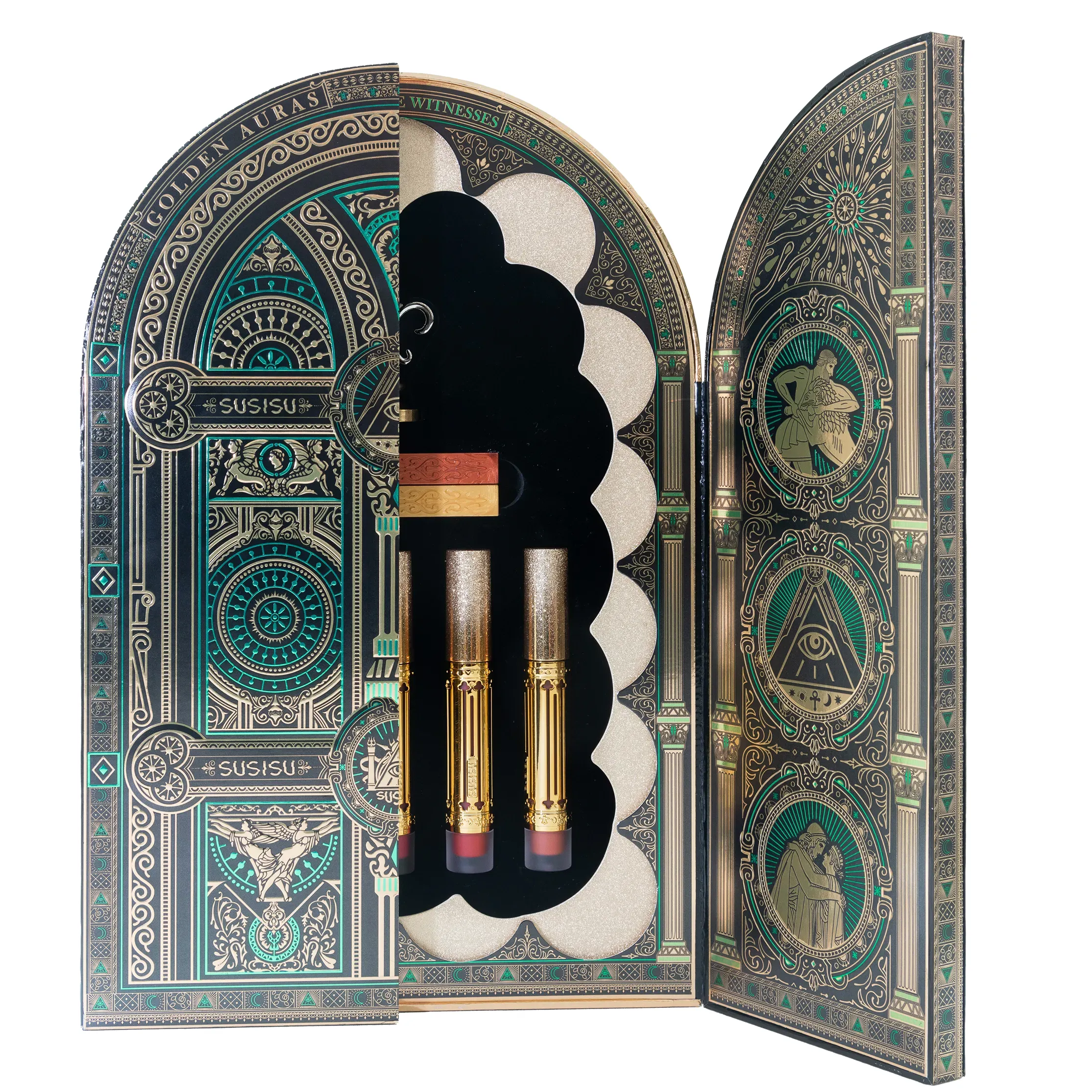 The box’s edges and corners are delicately rounded, imparting a tactile softness that enhances the overall comfort. Inside, an oval recess mirrors the silhouette of a lipstick, enhancing the box’s artistic allure. Furthermore, the incorporation of a magnetic closure system ensures the double doors snap shut effortlessly, preserving the box’s pristine appearance and maintaining organizational tidiness. This cosmetic packaging box is a testament to the brand’s meticulous craftsmanship and attention to every intricate detail.